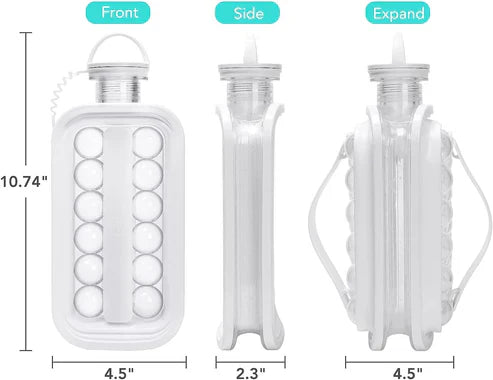 ✔ Multi-view Dimensions (10.74" H x 4.5" W x 2.3" D) – Slim, bottle-like form fits in most freezer compartments and is easy to carry for parties or work.